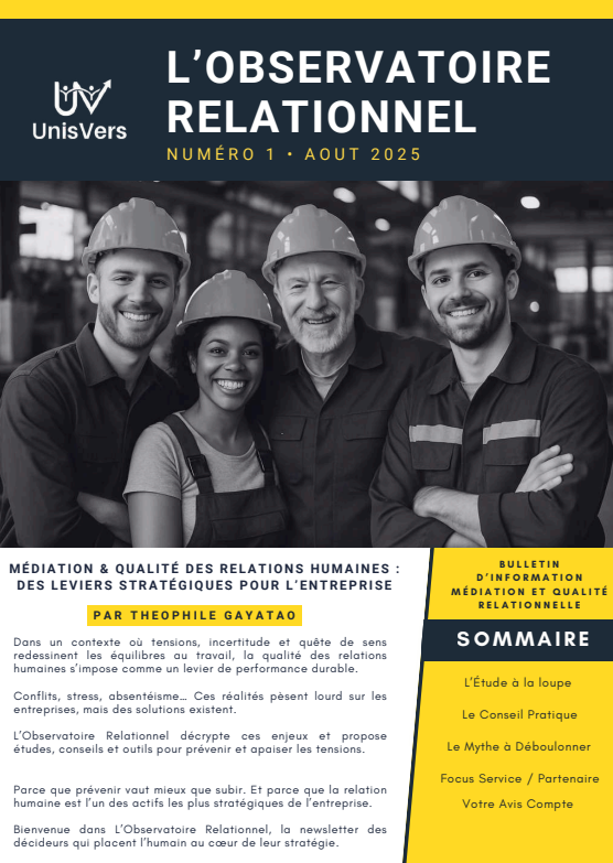 Dans un monde où les conflits, qu’ils soient personnels ou professionnels, font partie de nos vies, UniVers propose une solution efficace : la médiation », déclare Théophile Gayatao. Basé à Tiercé et actif dans toute la France, le cabinet accompagne les particuliers et les entreprises dans la résolution des conflits et forme à la qualité relationnelle en entreprise, le tout sous le contrôle de la chambre syndicale de la médiation et de la négociation (CPMN).